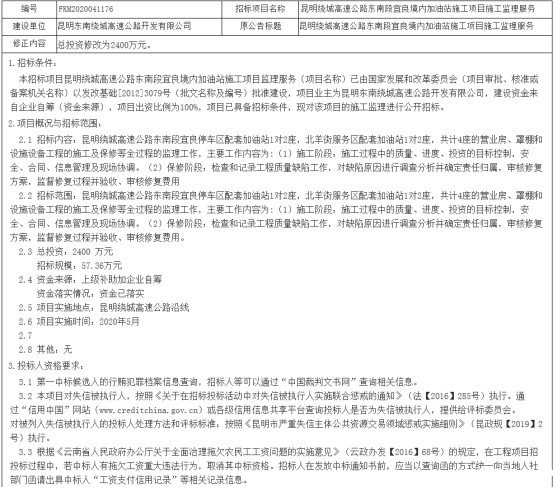 昆明绕城高速公路东南段宜良境内加油站施工项目监理服务招标公告