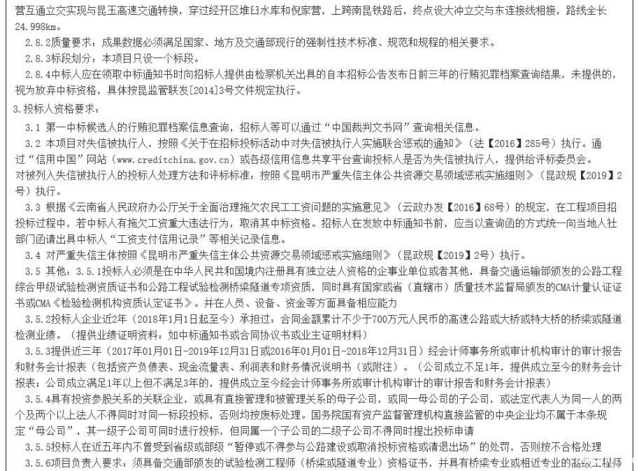 昆明南连接线高速公路2020-2022年度桥隧检测、监测项目招标公告