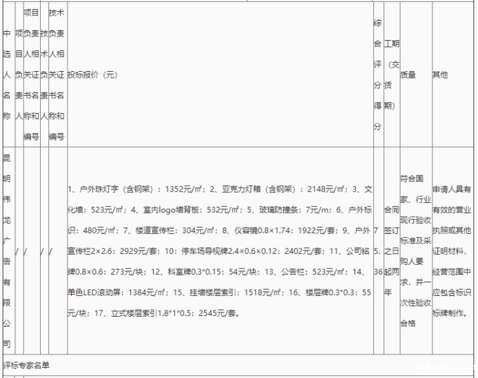 昆明市高速公路建设开发股份有限公司户外标识制作项目(二次)中标结果公示