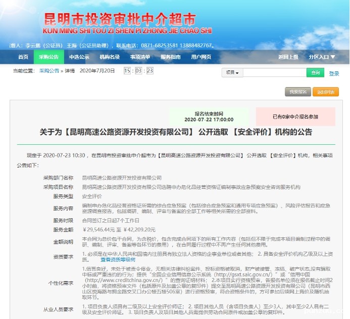 昆明高速公路资源开发投资有限公司选聘申办危化品经营资格证编制事故应急预案安全咨询服务机构中介超市公开选取公告