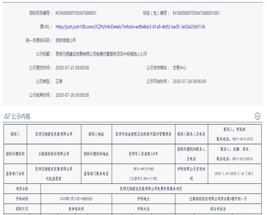 昆明元朔建设发展有限公司电费托管服务项目评标结果公示