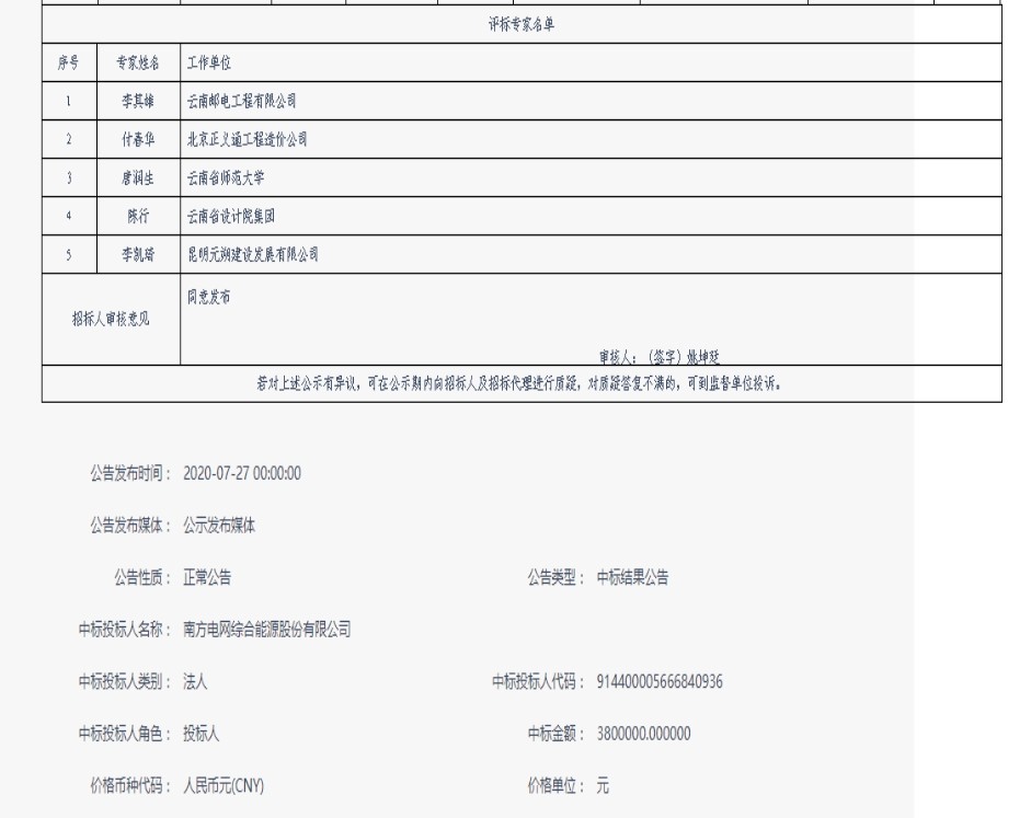 昆明元朔建设发展有限公司电费托管服务项目中标结果公示