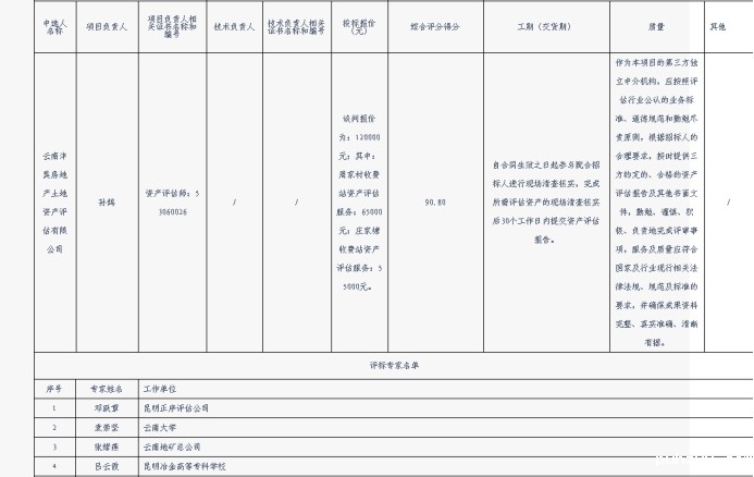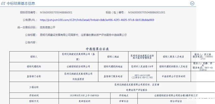 昆明元朔建设发展有限公司周家村、庄家塘收费站资产评估服务中选结果公示