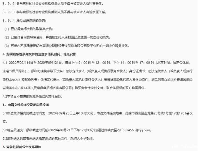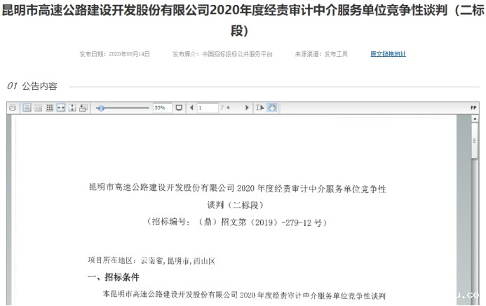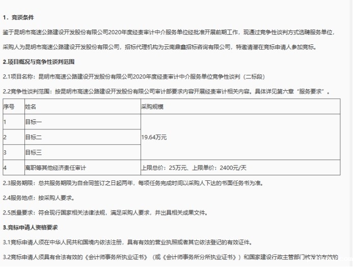 昆明市高速公路建设开发股份有限公司2020年度经责审计中介服务单位竞争性谈判(二标段)公告