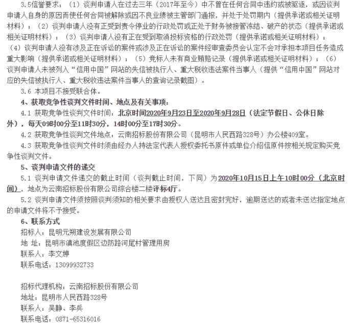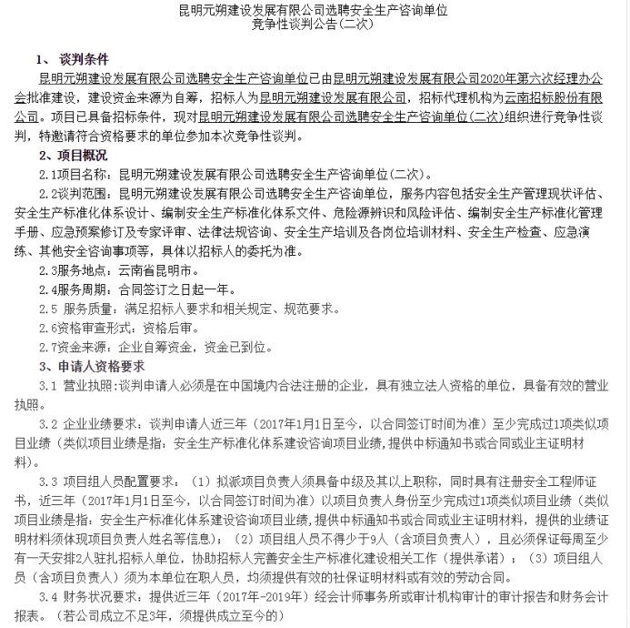 昆明元朔建设发展有限公司选聘安全生产咨询单位竞争性谈判公告(二次)