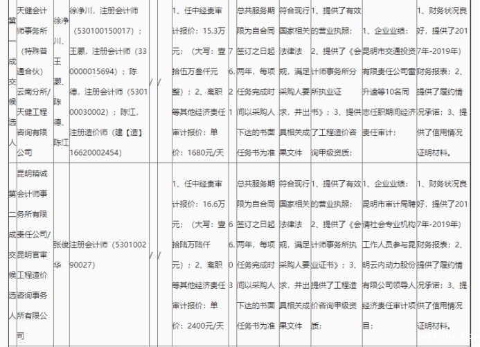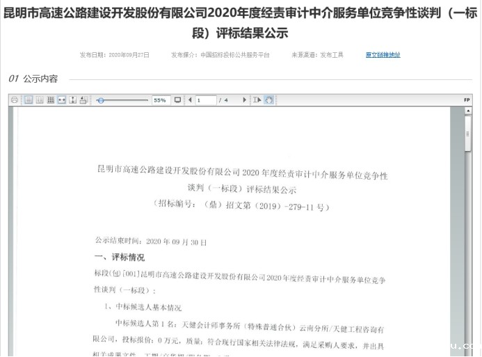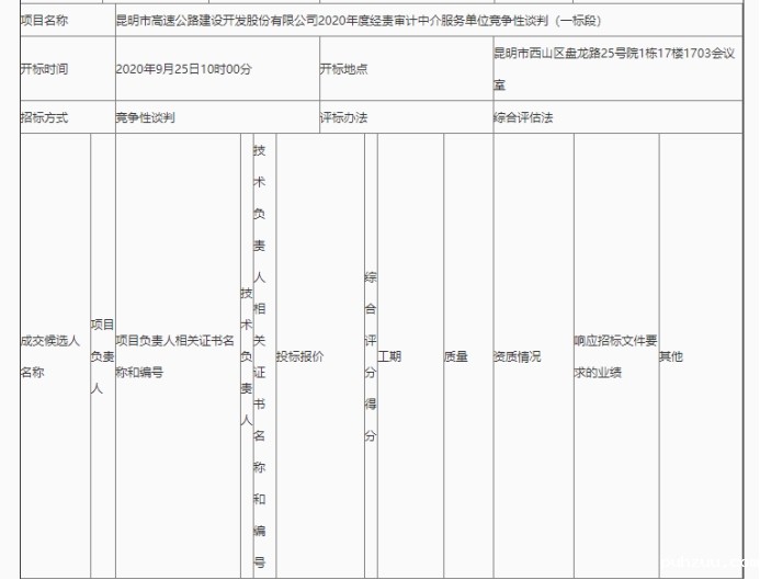 昆明市高速公路建设开发股份有限公司2020年度经责审计中介服务单位竞争性谈判(一标段)评标结果公示