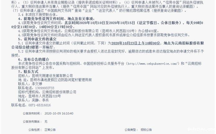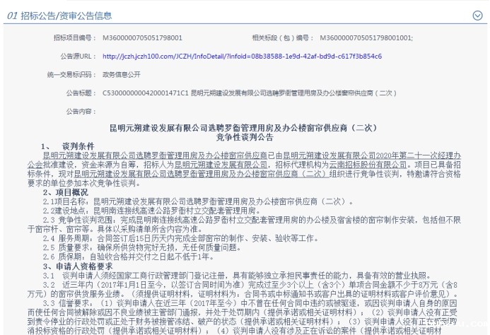 昆明元朔建设发展有限公司选聘罗衙管理用房及办公楼窗帘供应商(二次)竞争性谈判公告
