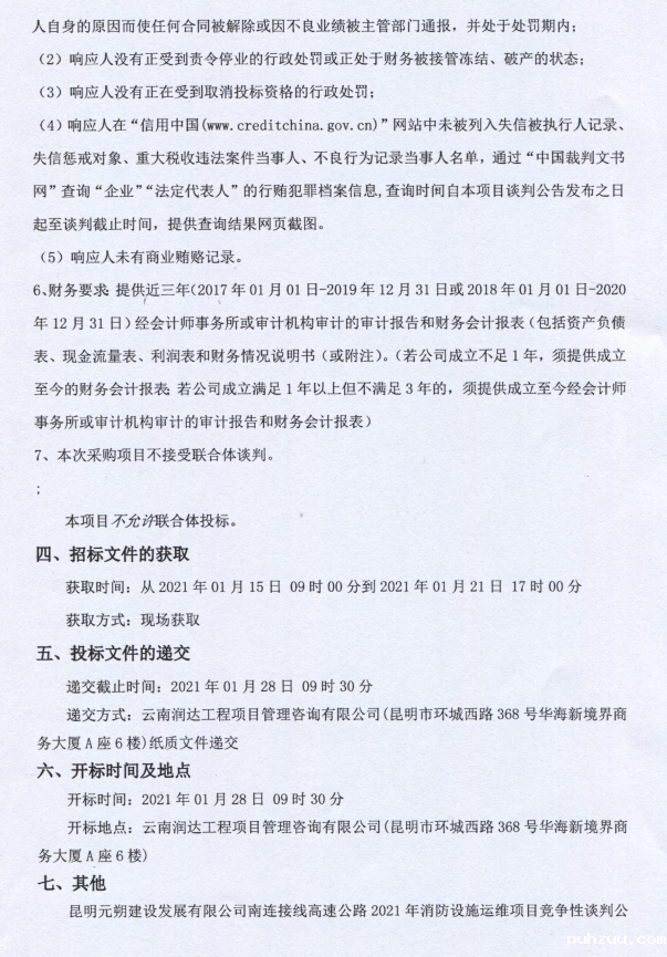 昆明元朔建设发展有限公司南连接线高速公路2021年消防设施运维项目竞争性谈判公告