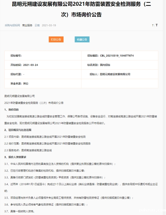 昆明元朔建设发展有限公司2021年防雷装置安全检测服务(二次)市场询价公告