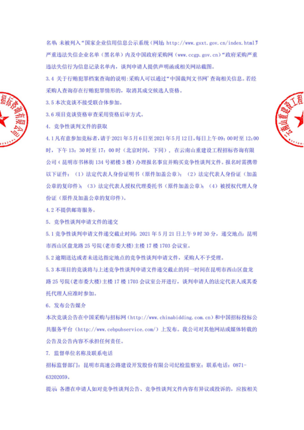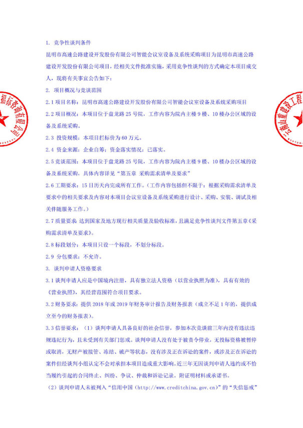 昆明市高速公路建设开发股份有限公司智能会议室设备及系统采购项目竞争性谈判公告