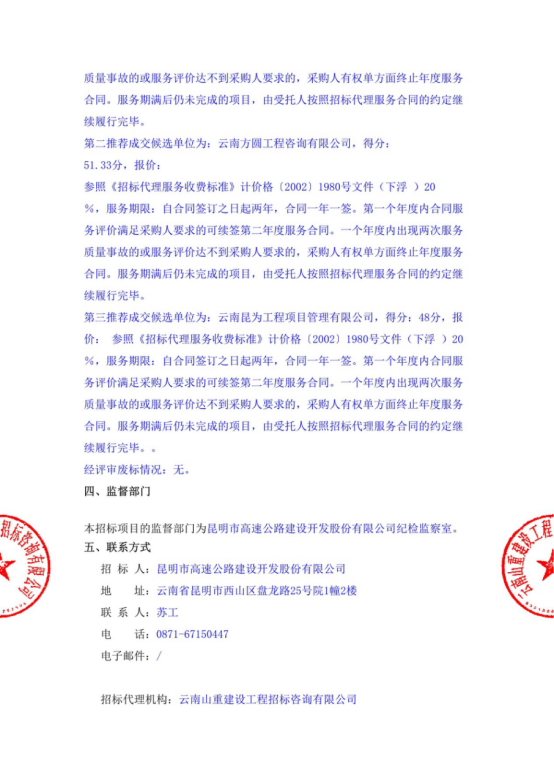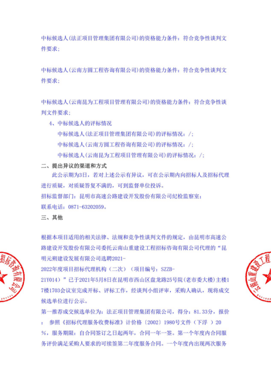 昆明元朔建设发展有限公司选聘2021-2022年度项目招标代理机构(二次)中标候选人公示