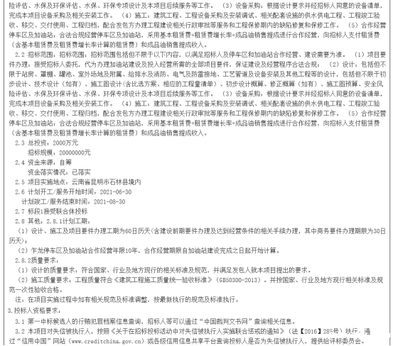 石林至泸西高速公路(昆明段)建设项目乍龙停车区及加油站合作经营+加油站建设EPC总承包招标公告