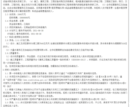 宜良至石林高速公路建设项目大叠水服务区及加油站合作经营+加油站建设EPC总承包招标公告