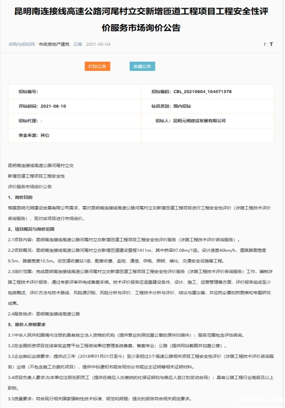 昆明南连接线高速公路河尾村立交新增匝道工程项目工程安全性评价服务市场询价公告