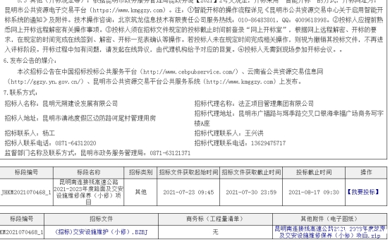 昆明南连接线高速公路2021-2023年度路面及交安设施维修保养(小修)项目招标公告