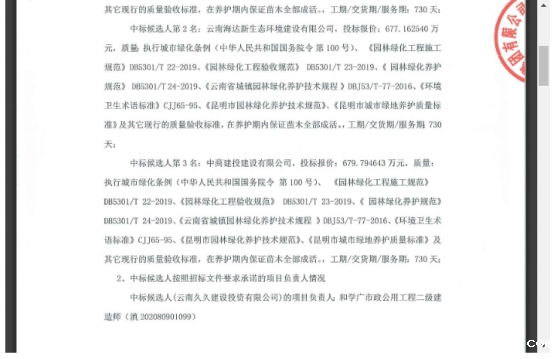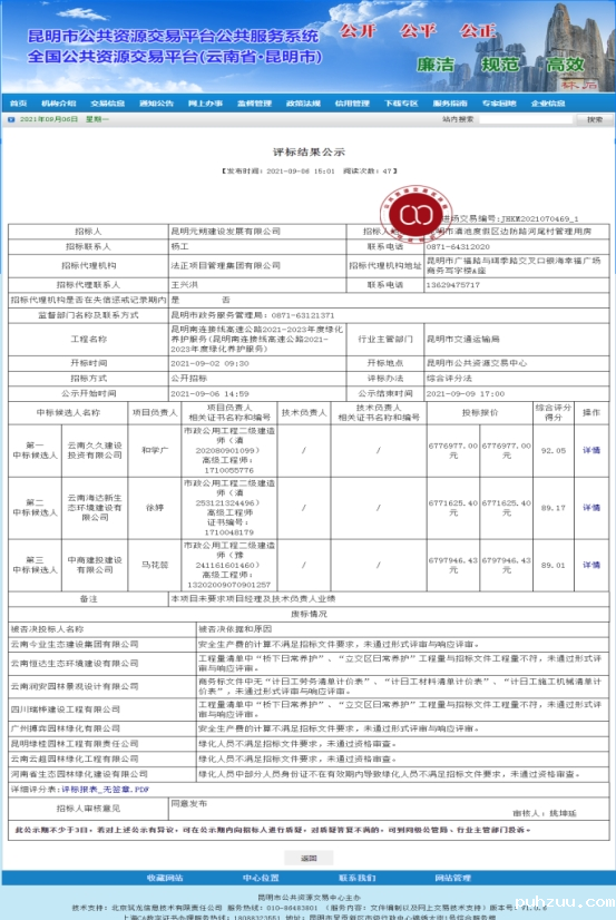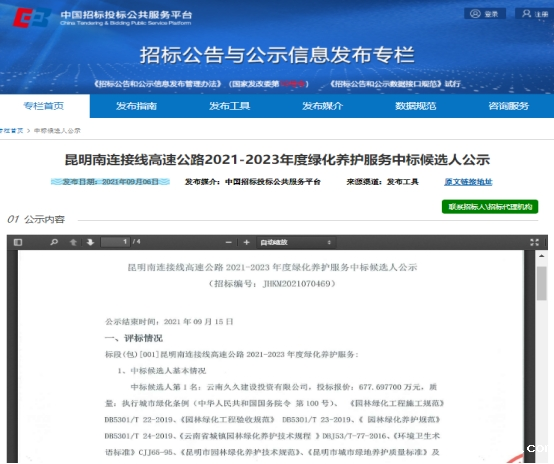 昆明南连接线高速公路2021-2023年度绿化养护服务中标候选人公示