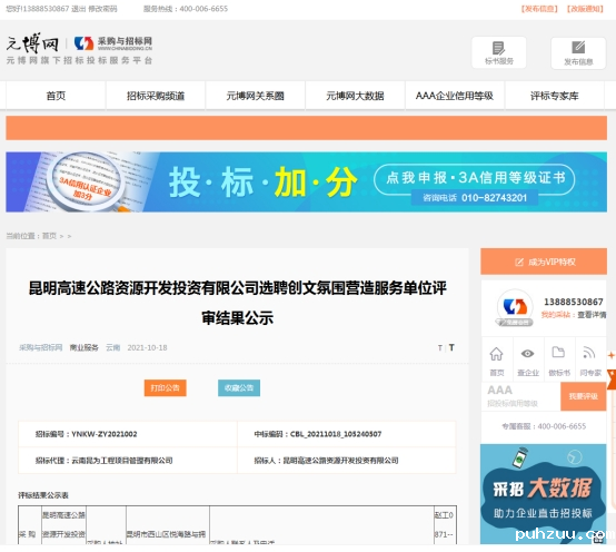 昆明高速公路资源开发投资有限公司选聘创文氛围营造服务单位评审结果公示