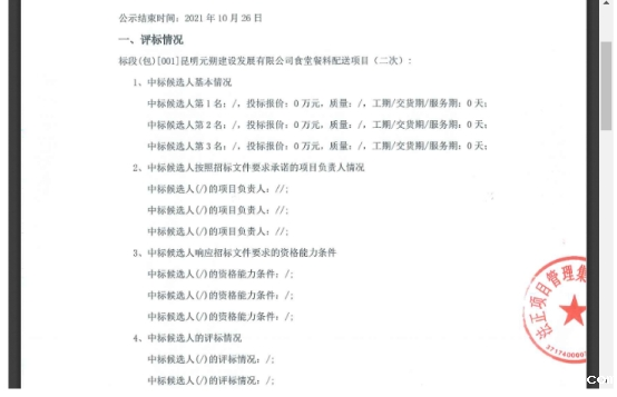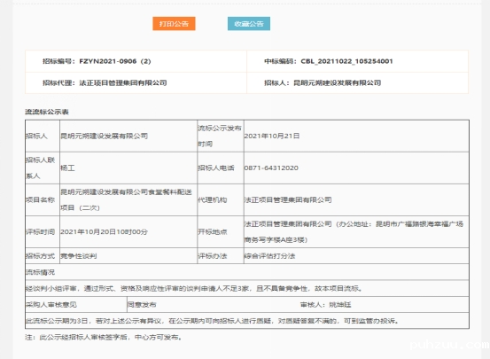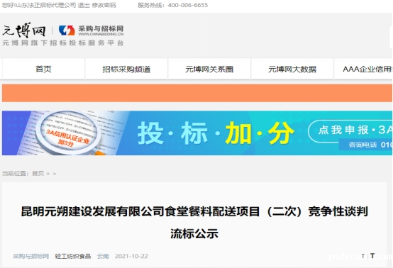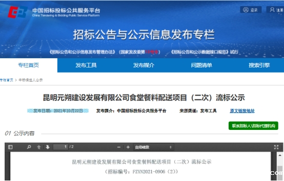 昆明元朔建设发展有限公司食堂餐料配送项目(二次)竞争性谈判流标公示