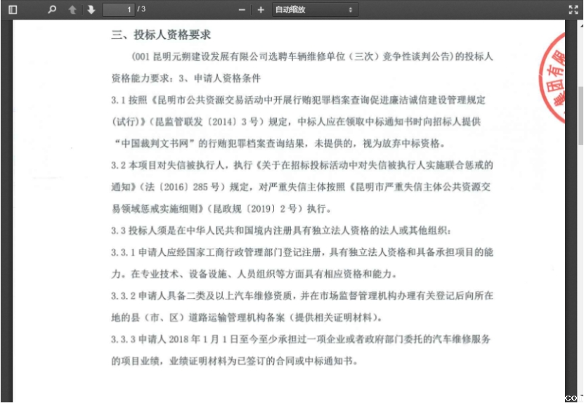 昆明元朔建设发展有限公司车辆维修竞争性谈判(三次)公告发布信息
