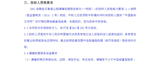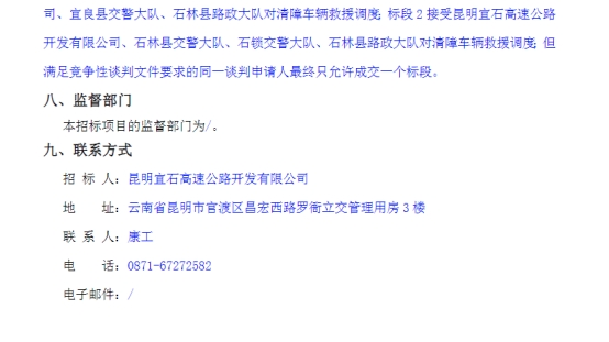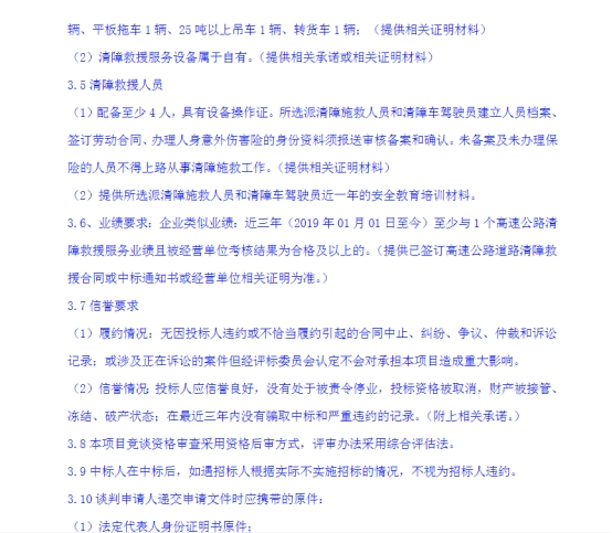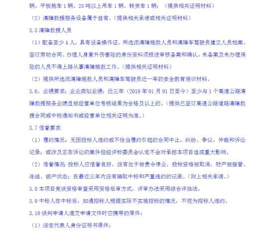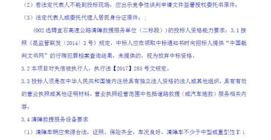 选聘宜石高速公路清障救援服务单位竞争性谈判公告