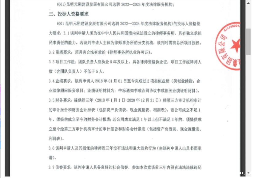 昆明元朔建设发展有限公司选聘2022—2024年度法律服务机构竞争性谈判公告