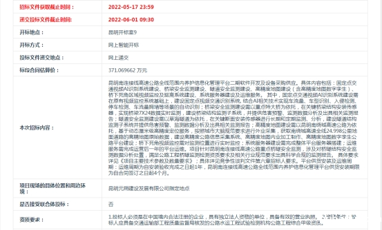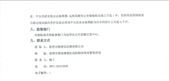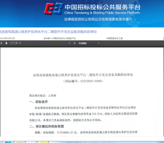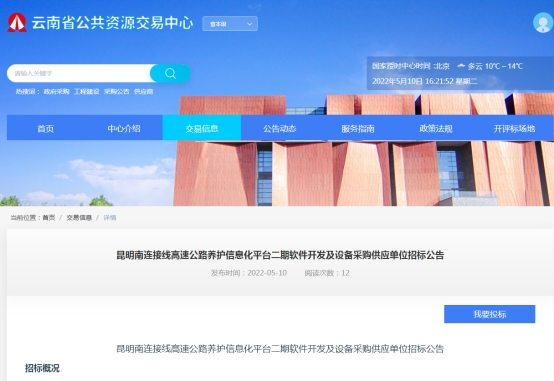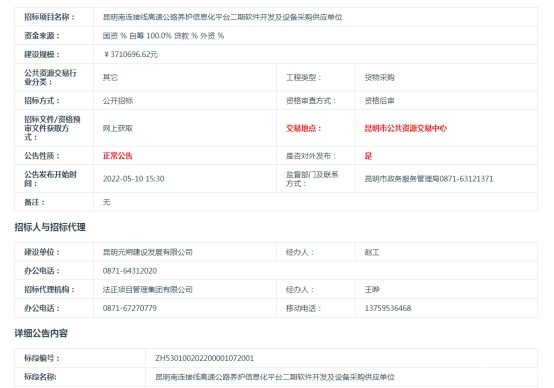 昆明南连接线高速公路养护信息化平台二期软件开发及设备采购供应单位招标公告