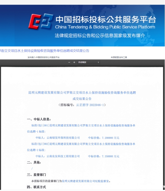 昆明元朔建设发展有限公司罗衙立交项目水土保持设施验收咨询服务单位选聘成交结果公告