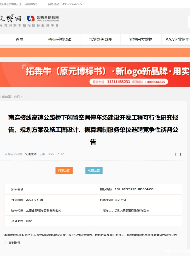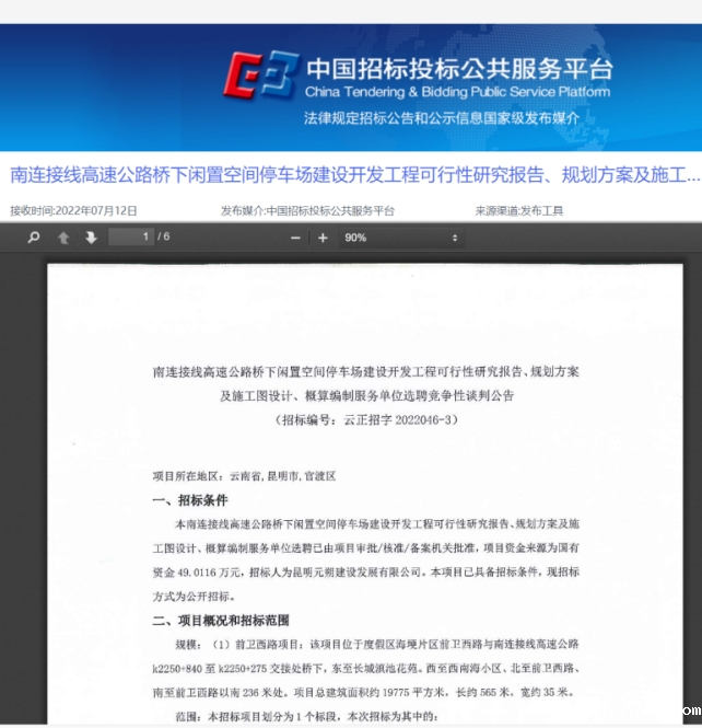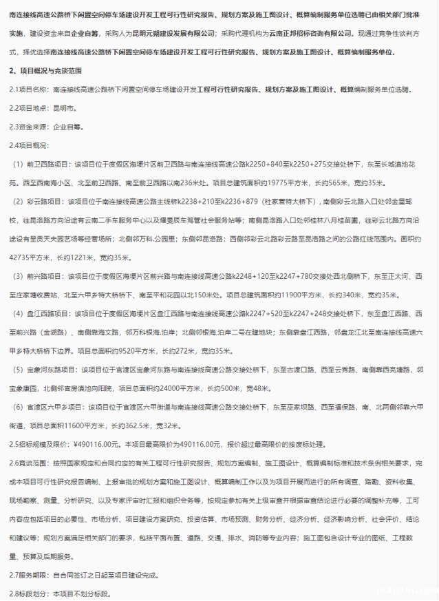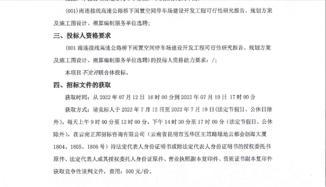 南连接线高速公路桥下闲置空间停车场建设开发工程可行性研究报告、规划方案及施工图设计、概算编制服务单位选聘竞争性谈判公告