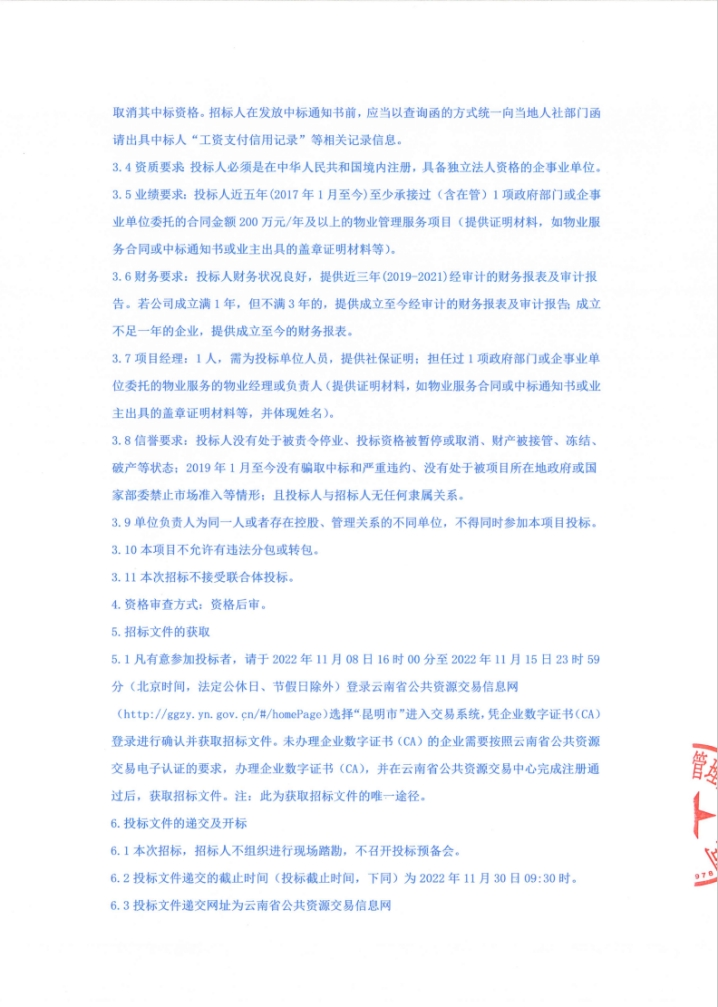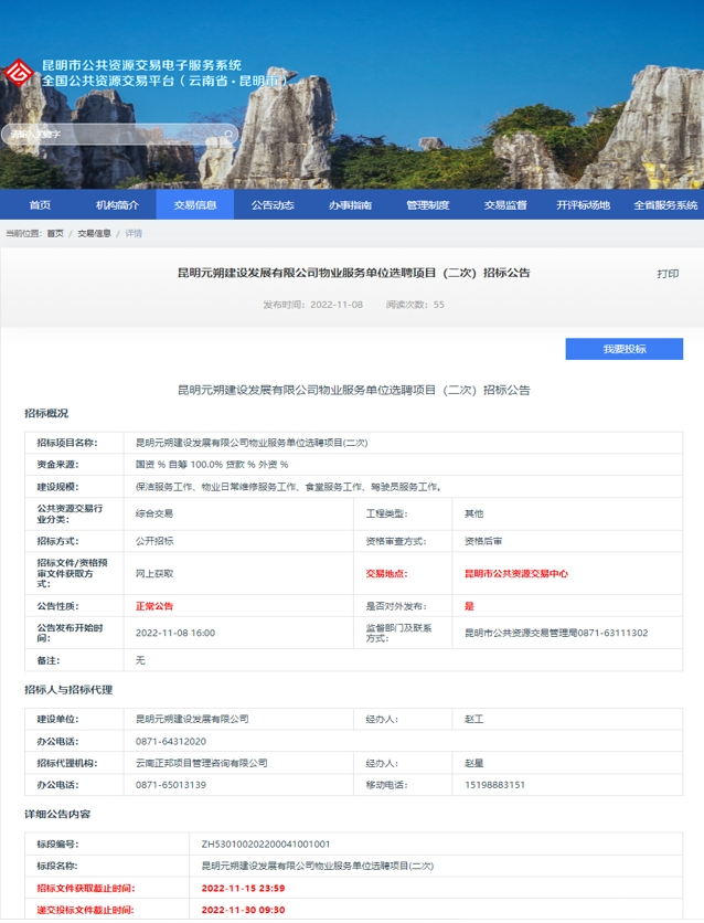 昆明元朔建设发展有限公司物业服务单位选聘项目(二次)招标公告